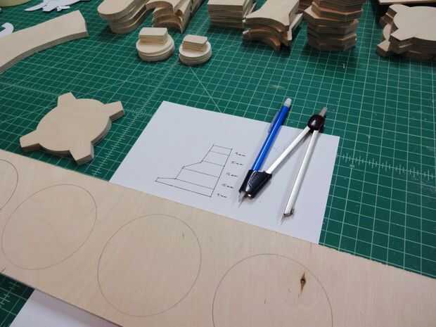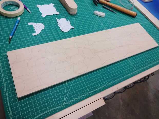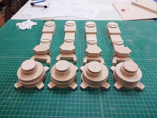 Comenzó trazando las plantillas para las diferentes piezas de la pierna y comenzó a cortar todas las piezas. Usé mi sierra de banda para la mayoría de las piezas de 15mm y la Sierra de calar para las piezas de 9mm y 3mm.