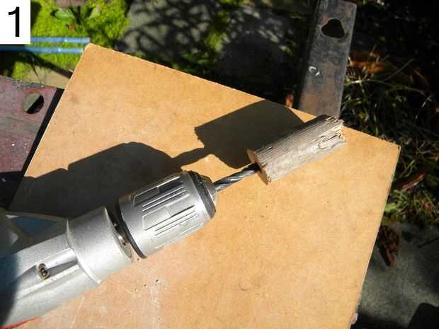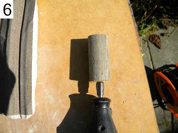 1: Si vas a usar un gran taladro Conecte un trozo cilíndrico de madera como este. Después de un tiempo de molienda puede que necesite utilizar una broca más grande.