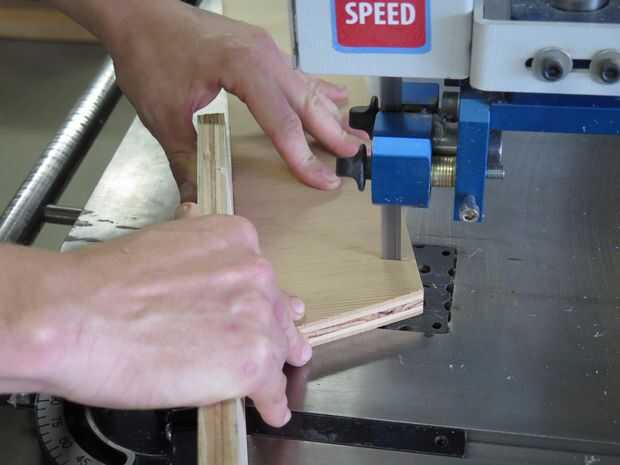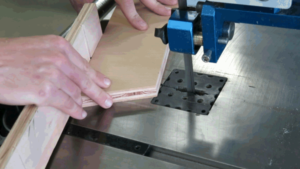 Ahora voltea la pieza de madera y medida a lo largo del borde superior. Elegí a medida 1" para cada una de estas piezas. Luego guardó mi trineo en el mismo ángulo y cortar otra vez, haciendo un trapezoide.