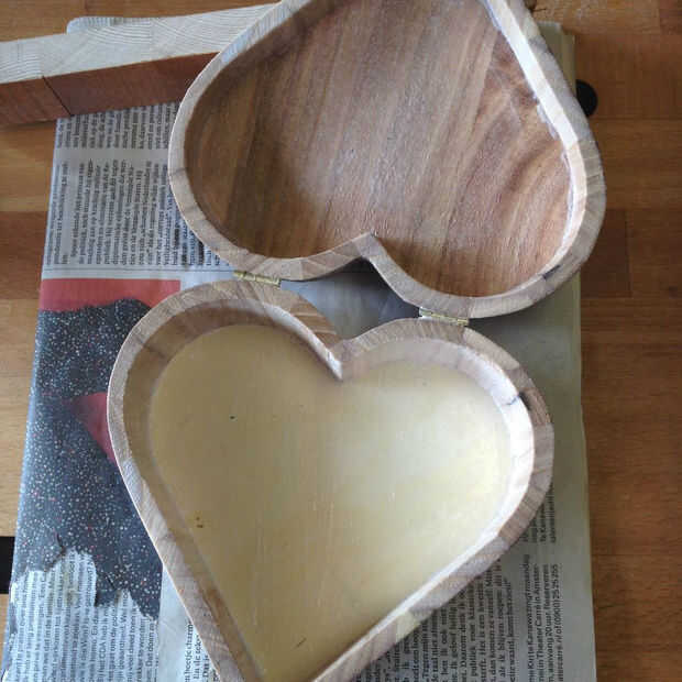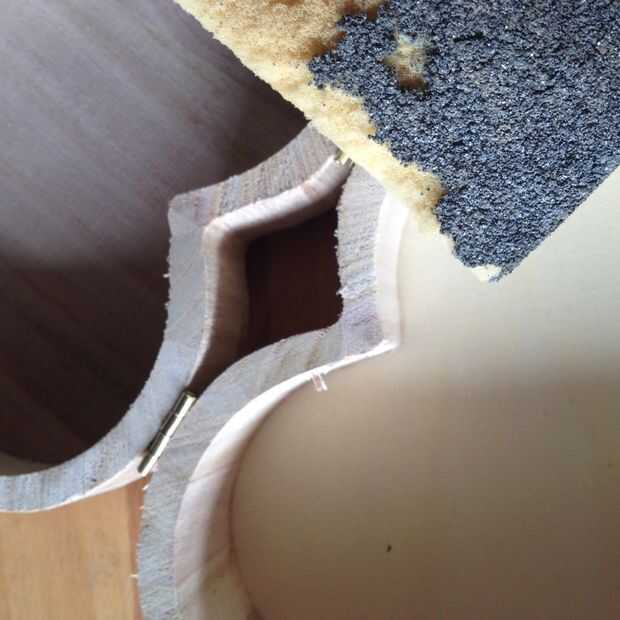 Arena de su caja, si es necesario, con papel de lija muy muy fino. Tratar con aceite de madera o madera tratamiento luego. Usé el tratamiento de madera de IKEA que funcionó muy bien.