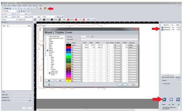 Vaya a configuración y asegúrese de saltar grabado. Elija cortar solamente. Asegúrese de que selecciona la configuración correcta cuando usted se va a utilizar el lasercutter. Cada lasercutter tiene valores diferentes cuando se trata de potencia, velocidad y pases. Ahora imprimir el archivo haciendo clic en 'Listo'. El lasercutter comenzará ahora. En caso de que algo no está claro, busque www.youtube.com tutoriales sobre el uso de Illustrator.