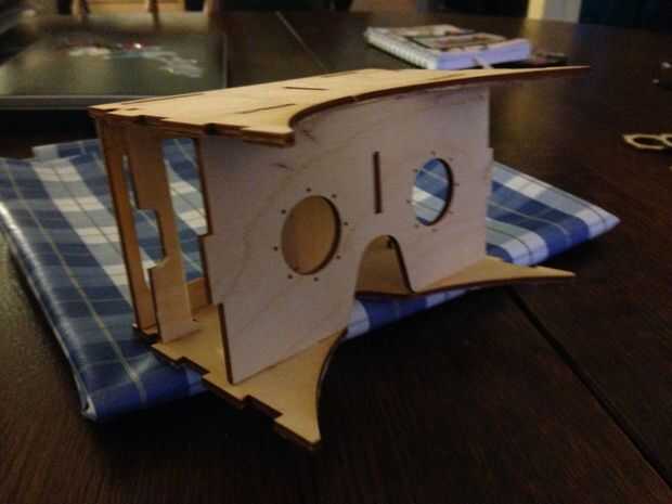 Montaje de la parte de 'cartón' de google madera 5. No estoy poniendo el sideparts hasta que las lentes se pegan en mi cartulina de google.