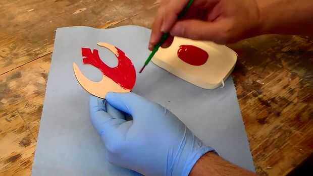 Mientras que seco corta el símbolo de la Alianza Rebelde y poner una capa rápida de pintura roja en él.
