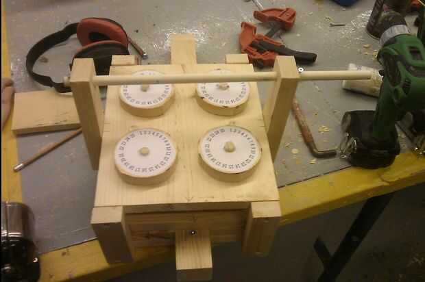 Lo primero, permite que sea más fácil moverse; colocar dos barras similares a lo que sostiene la placa de dial a la placa base a la placa de seguridad (y sólo la placa de cierre) luego conecte mediante otra pieza de la espiga, para que haya un mango robusto que se tire uniformemente directamente contra el muelle.