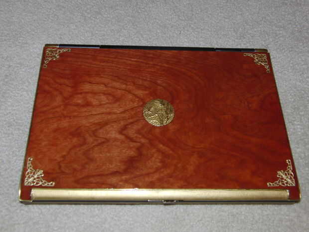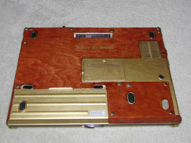 En la parte posterior de la laptop utilicé algunos frotar-en una antigua inscripción de inglés para mi nombre y pegados algunos remaches en lugar sobre los agujeros. (Nota: tenga en cuenta que esto puede causar problemas con la actualización más adelante)