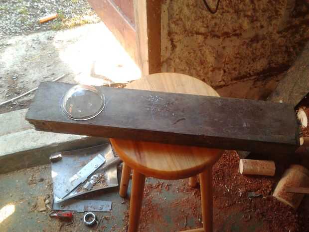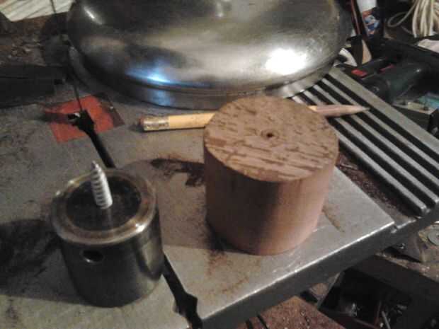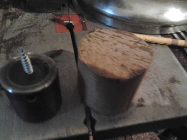 Corté un 7" en blanco de uno de los tablones de 2" y resultó muy bien y la madera era perfectamente sana para haber mentido a los elementos tanto tiempo. El único problema era mientras que la base para mi palillo de la vela el resto de la herramienta de torneado dio para arriba el fantasma otra vez y necesita ser reconstruido.