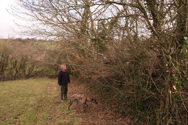 En esta etapa la cobertura está comenzando a mirar un poco desaliñado, con algunas de las especies como blackthorn empezando a conseguir sombra hacia fuera de los árboles más grandes tales como ceniza y roble. John inspecciona el seto con cuidado, haciendo una nota mental de los árboles más grandes para salir, el intermedio adecuado para vástago y los más pequeños para la colocación. ¿Creo que el perro está en busca de un conejo?