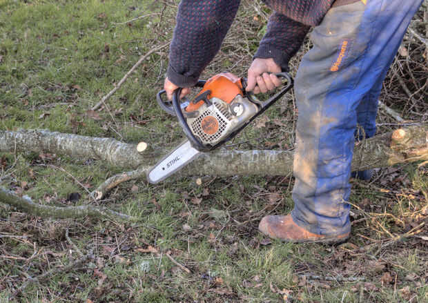 Las ramas laterales o 'temerario', ahora se extrae de los árboles con una motosierra.