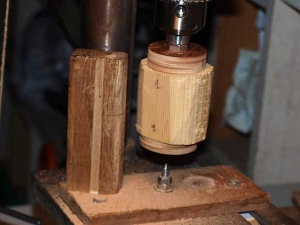 1. La pieza debe ser totalmente inmovilizados sobre la mesa del taladro para hacer el agujero. No hago esto y el resultado es un cambio en la perforación ya que la madera era demasiado suave.