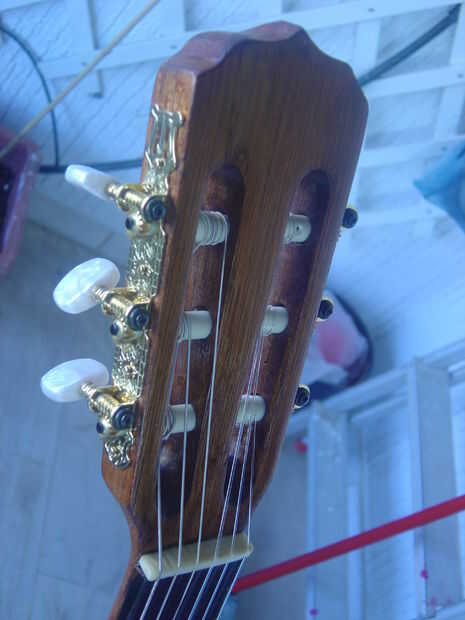 • Estas son útiles para las reparaciones.  Hace dos años restauré una guitarra clásica gravemente dañada.  Usé una cuña de madera a través de y pegamento especial para instrumentos para reparar la pieza clave rota.  La restauración completa duró 2-3 meses y es una historia propia. Alguna información es en las fotos de abajo.