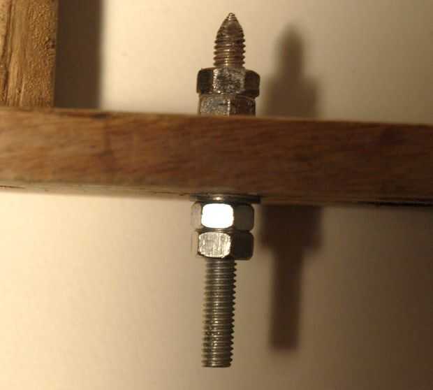 Esto permite que la pieza de trabajo gire alrededor de un eje estable. Consiste en un eje corto con forma cónica, generalmente montada en un rodamiento de bolas. Hice mía de la manera más simple posible y resultó suficiente. Está hecho de un tornillo libre para girar en su agujero, apoyado por doble tuercas y arandelas.