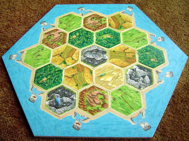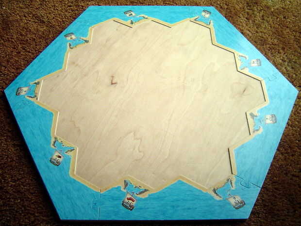 La placa que viene con el Catan tiene hexágonos y un borde de cartón ligero. Unos niños bulliciosos y deforme un poco y el juego pueden ser bastante frustrantes jugar. Mi inicial era pegar la frontera hasta un hexágono grande de madera (ver fotos). Nota: me recientemente (2015) he dado una copia de la 5ª edición, y no tiene este problema en todos. Hay pequeños huecos entre los azulejos que impiden el deformación problema.