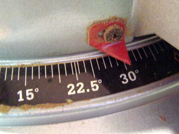 Ángulo de inglete vio a 30 grados; no 30.5 o 29.5, pero exactamente 30. Cortar un montón de piezas de ensayo y encajan entre sí para asegurar que su ángulo es exacta. A menos que su sierra está configurada con increíble exactitud, tendrás que empujar acerca de lo que lee en el manómetro.