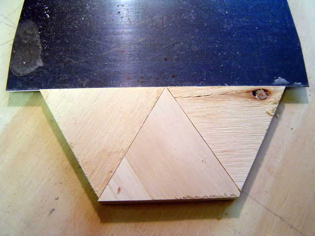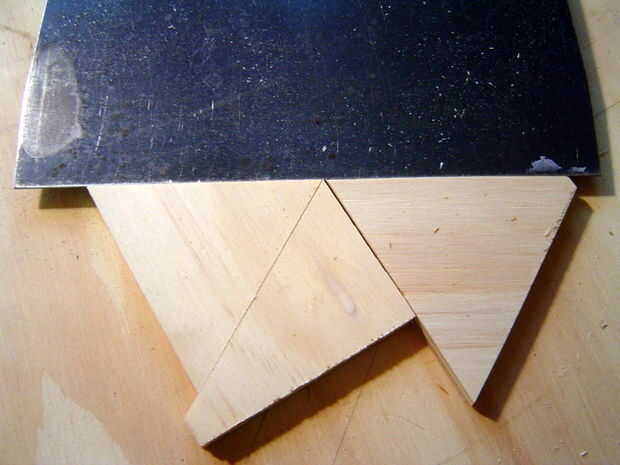 Marque el centro y coloque una parada por lo que su ángulo de corte precisamente adornos fuera de un triángulo de grados 30 (ver imagen). Otra vez, vas a tener que jugar un poco para hacer las cosas exactamente bien - precisión submilimétrica en orden aquí.