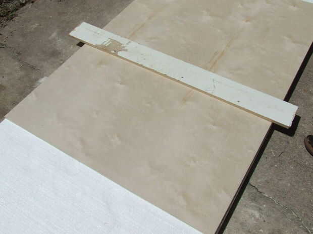 utilice un pedazo de madera con un borde recto y la abrazadera o tornillo a la madera contrachapada, sólo asegúrese de añadir la base para la medición de la anchura de la sierra.