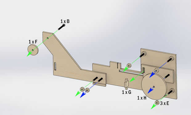 Paso 3: Uso pieza 1 x B / 1 x F / 1 G X / 1 x H / 3 x E