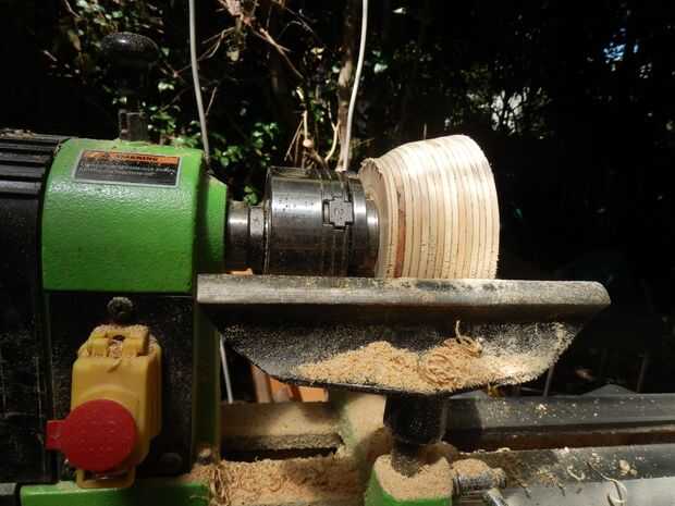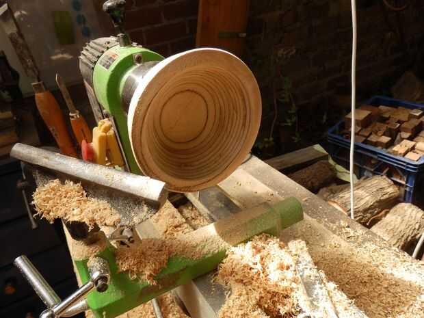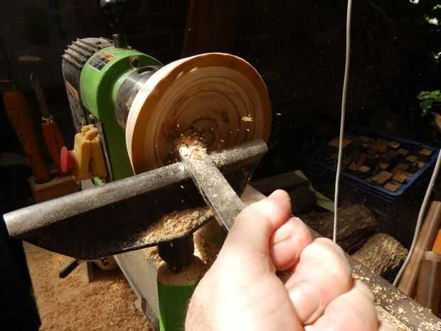El tazón de fuente se tiraron con la espiga. Que forma la parte exterior y hueco el recipiente utilizando una gubia de tazón y un rascador.