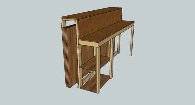El diseño de todo el sistema fue especialmente diseñado para mi espacio, pero el mismo concepto básico podría ser utilizado para guardar las hojas en cualquier tienda. Para mí, además de ayudarme a corral mi madera contrachapada, esto también servirá como un bonito estante alto y se convertirá en un lugar donde se montar una mesa de montaje (como se muestra en mi modelo de Sketchup).