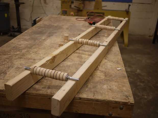 Luego hice la base del soporte donde pude montar mi rodillos. Utiliza 2 X 4 pernos prisioneros y que estén cuidadosamente urdido - al menos un lado de cada uno necesita se siente muy en el suelo.