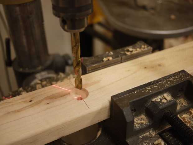 5. Agarró los tableros sujeta en un tornillo de banco para mantener quieto mientras que perforé en el taladro.