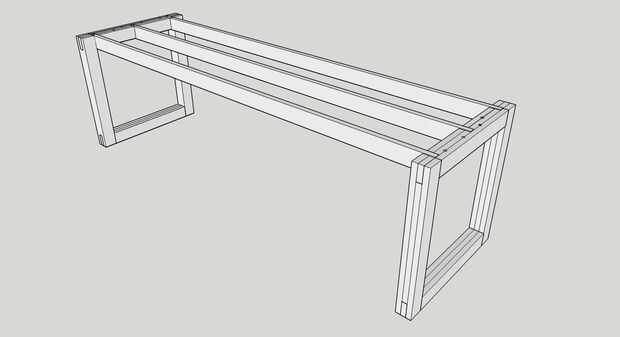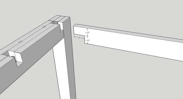 — Tomar las tres vigas, mide 94 "x 3" de la ayuda y cortaron tabs 1 1/2" de ancho y 2", correspondiente a las mortajas en las piernas. Ver foto.