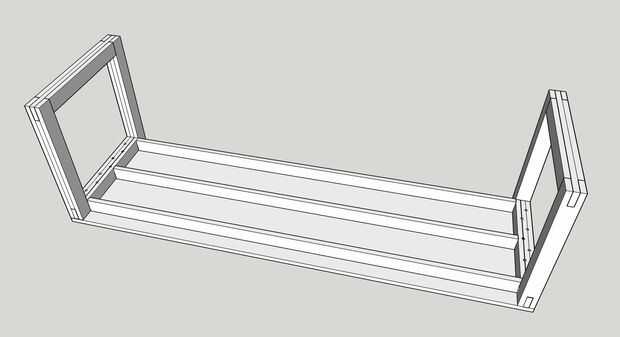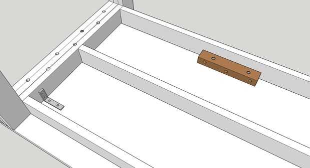 — Para mantener las vigas de apoyo externo de ser empujado en o por las rodillas díscolas, sujete a la parte superior, ya sea por perforación oblicua en la parte superior o con soportes o — como en la foto, agregando pequeñas tiras de madera dura y apretándolos hasta la viga y la parte superior.