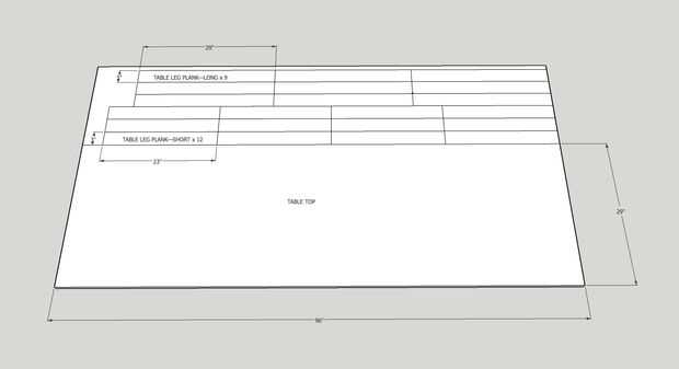 Las tablas se utilizarán para hacer la Plaza "patas" de la mesa (3 planchas muchos más corta de la hoja 2).
