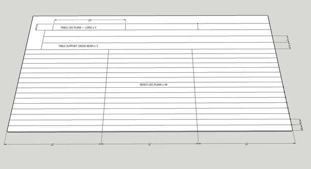 48 planchas de 32 "x 2" (Banco de "piernas")