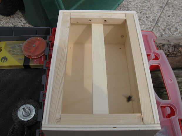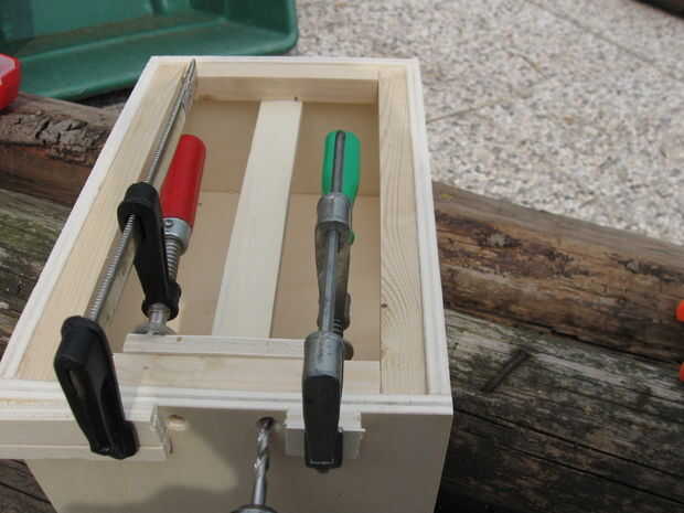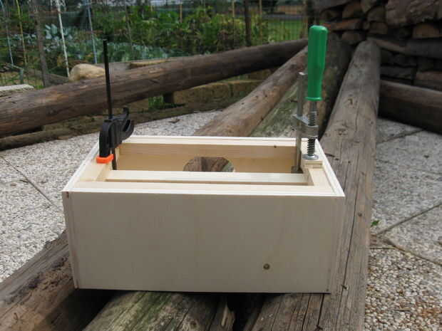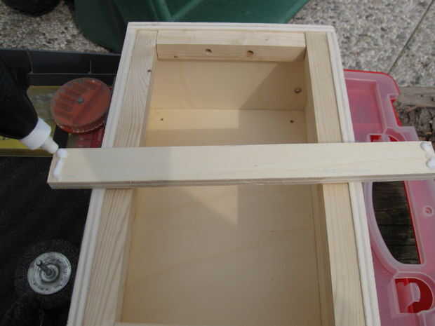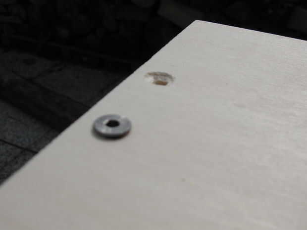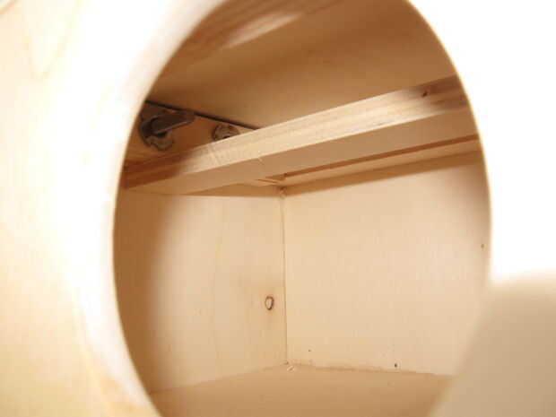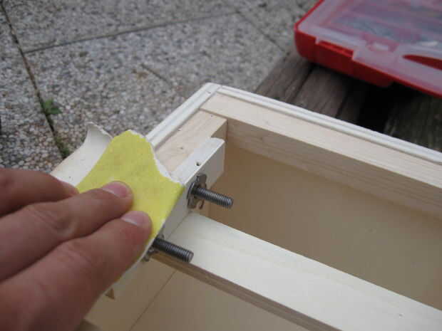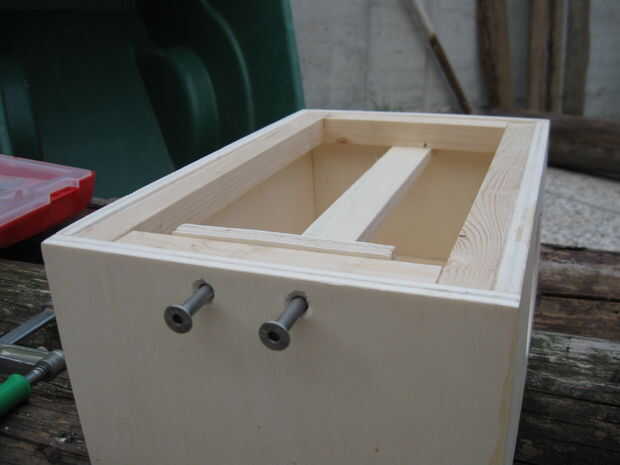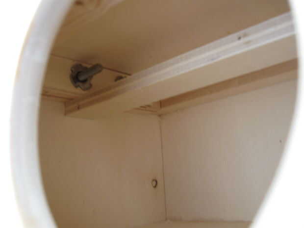 Luego he montado todas las piezas y colocar la cara de golpe en la caja de resonancia para comprobar si había suficiente espacio entre el regulador de madera contrachapada y cara para la cadena a ejecutar a través de la palmada. No, era así que había que pulir un poco el deslizador y la amoladora en la tuerca de t. Con una mejor planificación y medición probablemente puede evitar esto, pero tener cuidado porque no desea demasiado de un boquete o la cadena de no estar tocando la cara de golpe.