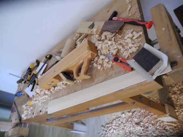 Para el desplazamiento que necesitaba trabajar con una sierra japonesa, un cincel y una herramienta giratoria. Para el agujero he utilizado la broca forstner y cinceles, demasiado.
