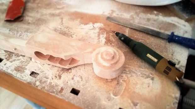 Cortar las piezas con la banda y plantilla vio y que él tomó mi botín de tiempo para terminar la forma de cortar, lijar o limar.