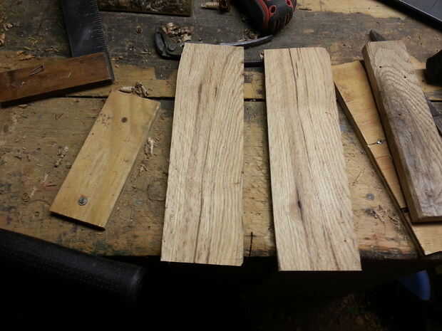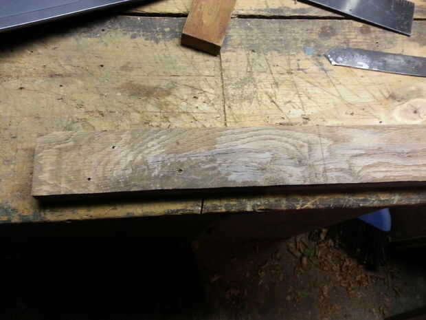 Como con todos los proyectos, primero seleccionamos nuestro stock. Cualquier tipo de madera creo que es una buena opción. La madera que estoy usando es de un viejo sofá que estaba en mi sótano que pasé. El sofá era viejo y ratty así que tomó aparte y encontré algo muy bonita de madera allí. ¿Creo que es roble, pero carece de mis habilidades en la identificación de la madera, pero también lo sería en un viejo sofá cutre? La pieza inferior en la primera foto será el mango y la parte superior quede la hoja (la parte que ejecute nuestro lápiz o un cuchillo de la marca a lo largo). Con la madera que he seleccionado, tuve que pasar un tiempo sacando grapas y clavos.