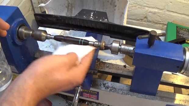 Limpiar el forro interior con cualquiera que sea el cincel le conviene mejor., luego arena el espacio en blanco hasta un grano 1200 y limpie con aguarrás.