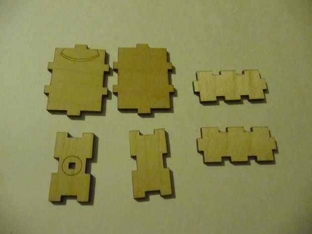 El cuerpo del caballero de madera de construcción es similar a unir la cabeza. La pieza de la parte inferior del cuerpo es el sin el agujero de la pieza superior estando el uno con el agujero. Armar el cuerpo haciendo un cubo de la misma manera que se hizo con la cabeza, las piezas estrechas que los lados y las piezas más amplias que la parte delantera y trasera. La pieza frontal tiene un "cuello" en su cara limpia, que esté orientada hacia arriba lejos de la tierra. Cuando usted coloque la tapa en el cuerpo, el círculo alrededor del agujero debe estar hacia arriba.