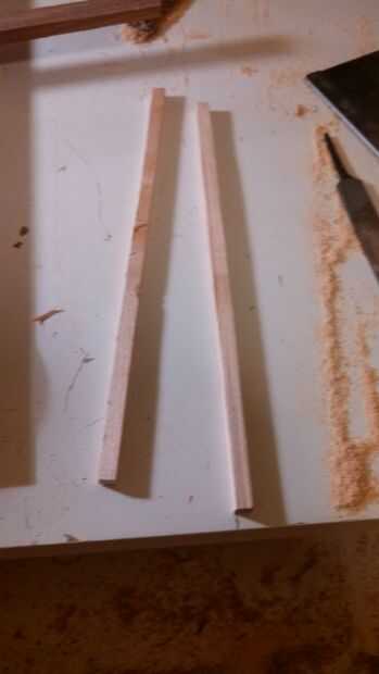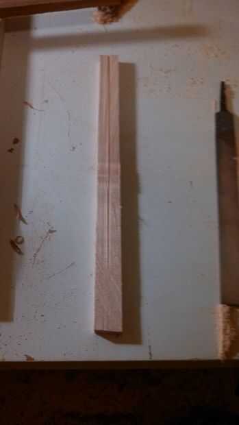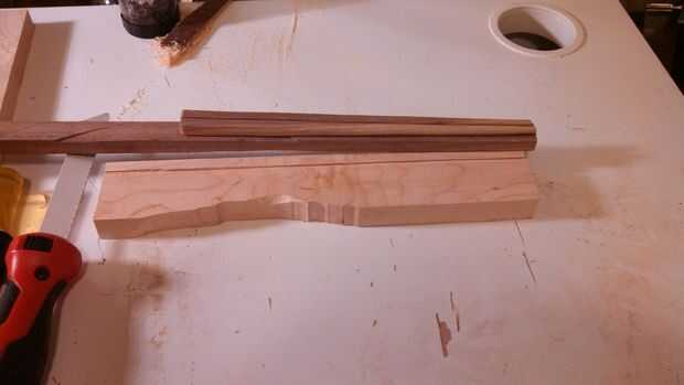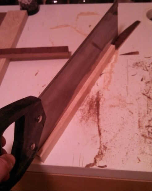 Utilicé una sierra de mano para cortar el desecho de la madera dura que tuve que alrededor de un cuarto de una plaza de pulgadas por alrededor de un pie largo espacios en blanco.