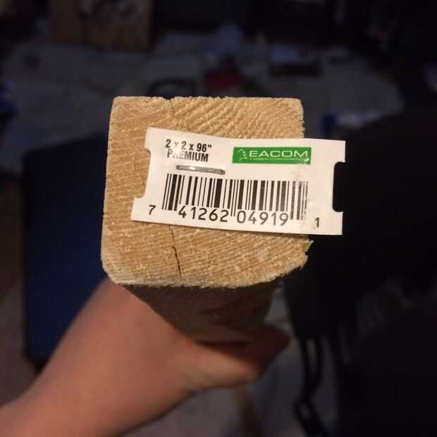 También quiere un 2 "x 2" x 96 "(96" es 8') (y también no tengas miedo/sorpresa cuando note tu 2 x 2 es sólo 1-7/16 x 1-7/16 ti ok) esto es un corte bastante áspera y tiene liso redondeado en las esquinas. La encontré con la madera de construcción de uso general. Hago referencia a esto como un 2 x 2 o "dos por dos".