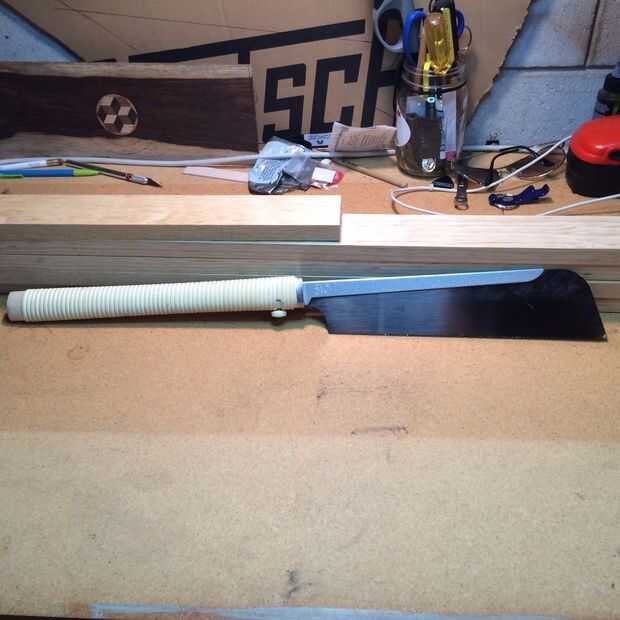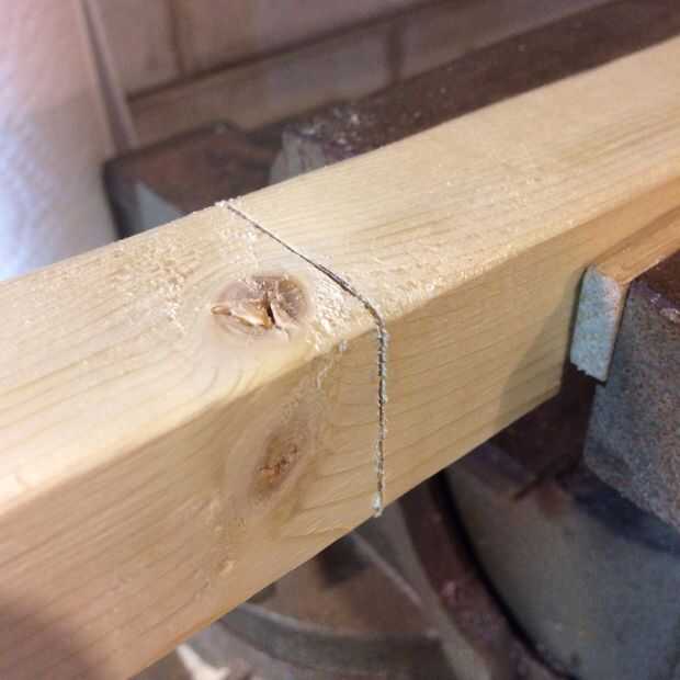 Después de medir su longitud en su tablero, debe marcar 2 lados con una plaza. Esto hará que la línea un hacer un cuadrado cortado sin una sierra de ingletes o una caja de ingletes más fácil. Si tienes una sierra de ingletes o una caja de ingletes por todos los medios usarlo. No estoy en busca de la perfección absoluta y estoy confidente con mi dozuki.