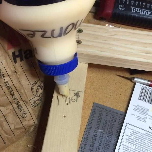 Marca la primera brecha 1-11/16" hacia abajo desde el corredor superior en ambos lados. (Esto también no es la dimensión que aparece en el sitio web de pedaltrain {se dice que es 1-1/2. No es, medí}) que puede seguir adelante y pegue y atornille el corredor.