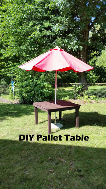 Avance rápido unos meses más tarde, justo una semana antes de nuestro verano barbacoa fiesta, y ahí tenéis este impresionante, mesa de palet reciclado hecho de madera 100% plataforma!