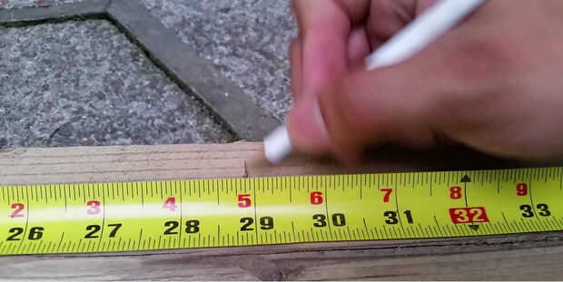 Una vez que se completó el marco, determiné la longitud de mis piernas mediante la medición de la altura de una mesa dentro de nuestra casa.