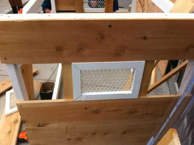 Después de que la madera fue cortada, excavamos en los tablones de la más cortos longitud de los lados correspondientes de la fama. Las tablas cortas (3 pies x 7 en x 1/2 en) se perforaron a partir horizontalmente en la parte inferior y que nuestra forma de trabajo para arriba. Hemos perforado en 4 tablas en ambos lados y que dejó para poner en las ventanas.