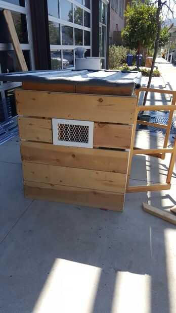 Con una los lados rellenados con madera, encontramos una gran chapa de aluminio (71 en x 3 pies) y puso sobre los soportes de techo para era baldosa ligeramente. Puesto que los tornillos normales no podían utilizarse para atornillar en el techo así que utilizamos una clase especial de arandelas para taladrar en el techo.