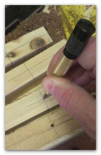 A continuación preparar tus espacios en blanco, si su hacer unos la consiga que les listo juntos ahorra time.mark los centros en cada extremo, usando un calibre, o sosteniendo un lápiz firmemente y con los dedos como indicador. Hacer varias marcas para asegurarse de que tiene el centro... Esto ayudará a la hora de recurrir a mantener estable en el torno y también reducir el material desperdiciado mientras haces el redondeo inicial.
