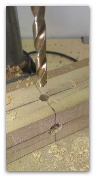 Medir el diámetro de las bujías y perfore agujeros en los puntos de cruz para que coincida con estos diámetros. Su ok para perforar a través, al menos para este proyecto como quisiera los insertos de la misma en los lados opuestos.