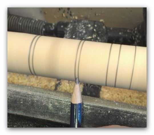 Luego marqué a puntos donde el dibujo cambia en el espacio en blanco. Una sola línea obtiene un poco débil cuando lo encienda el torno y mantenga el lápiz en el espacio en blanco para hacer una línea todo el camino alrededor de cada punto iniciará vuelta utilizando el dibujo como guía.