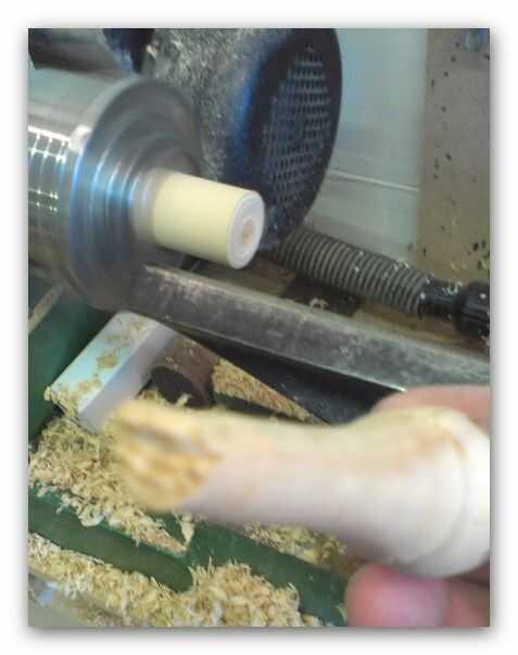 Mi primera pieza sufrió un percance - separó del torno (ver fotos), pero los demás bien. Apliqué un poco de pulimento antes de turing el punto esto dio un poco de apoyo mientras se aplica el acabado.