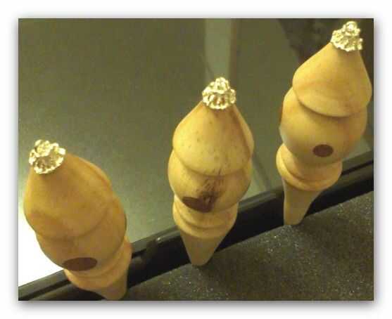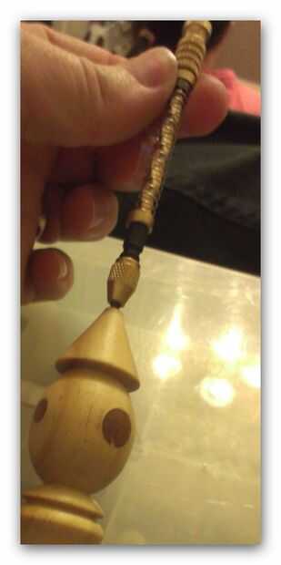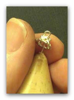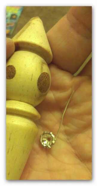 Entonces separó la decoración del torno y utilizan un taladro de mano pequeño para hacer un orificio en la parte superior. El gancho en la parte superior es una pieza de mano de alambre de plata retorcido y cortar para caber el orificio taladrado. Me gusta añadir un poco de bling como bien se esconde el agujero.