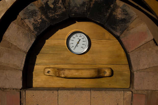 Finalmente decidí morder la bala y hacer correctamente la puerta de mi horno. He estado usando la forma (véase abajo) que solía hacer mi arco. pero así como no luciendo muy bonita allí era un montón de huecos para paso a través del aire. usted podría sentir verter hacia fuera con la mano. después de todo este esfuerzo aislante mi alquiler de horno todo el calor hacia fuera no tiene sentido. Recogí un termómetro de humos de Clus Olssen que es un increíble £8,49.