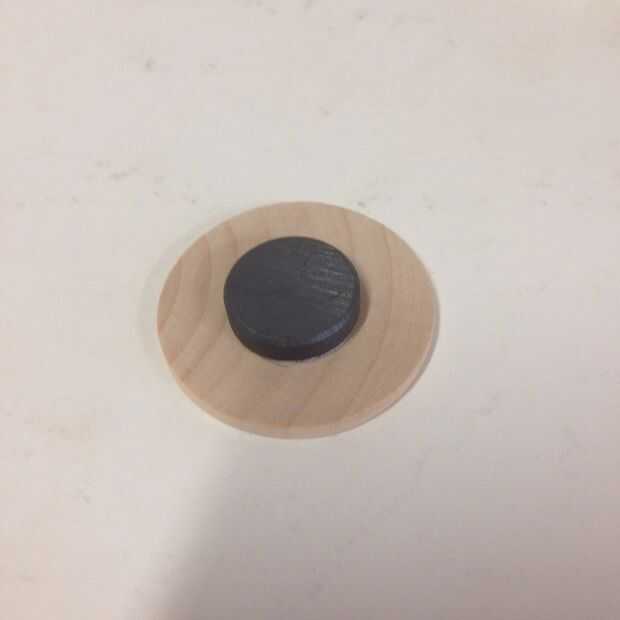 Usar una pistola de pegamento caliente, pegar el imán en la parte posterior del disco. Usé un clavo de acero para manejar los imanes y mantenga los dedos lejos del pegamento caliente. No hay necesidad de ser perfecto, que usted puede globo ocular el centro del disco.