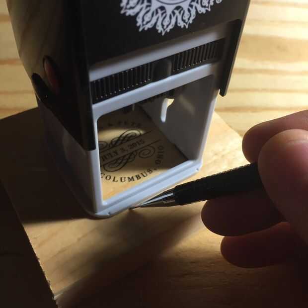 1. Empezar por la configuración de su máquina de estampilla en la parte superior del bloque de madera, prueba y mantenerlo centrado.